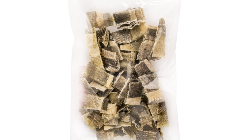 Samenstelling: alleen gedroogd, puur kabeljauwhuid