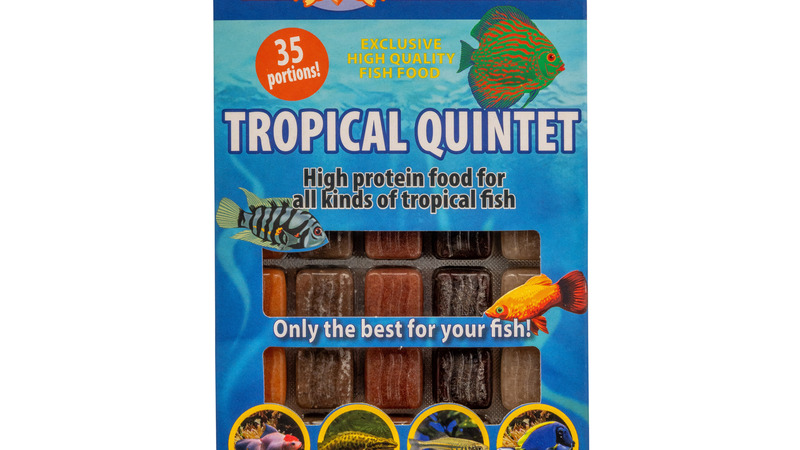Complete tropische mix van 5 soorten visvoer geschikt voor de dagelijkse voeding met vitaminen voor alle soorten aquariumvissen. De volgende 5 soorten zitten hierin apart verpakt : daphnia, artemia, rode, cyclops en witte muggenlarven. NIEUW : nu in 35 kleine porties in plaats van 24.